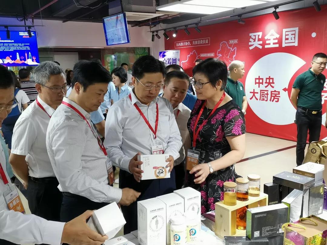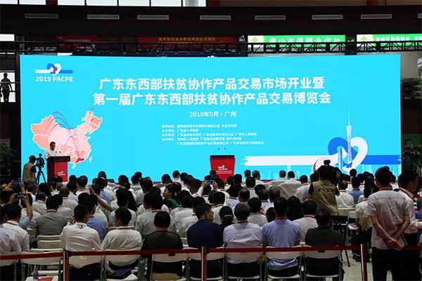 9月28日,广东东西部扶贫协作产品交易市场开业暨第一届广东东西部扶贫协作产品交易博览会开幕式在广州举行。广东省委书记李希、广东省省长马兴瑞、国务院扶贫办主任刘永富、农业农村部副部长余欣荣出席开幕式并参观展馆。