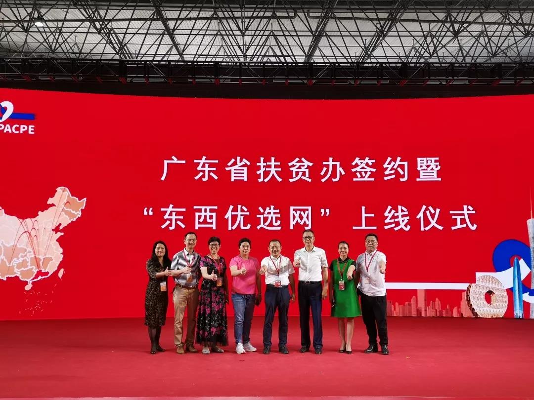 9月28日,第一届广东东西部扶贫协作产品交易博览会开幕式上,作为粤港澳大湾区“菜篮子”流通渠道重要合作伙伴之一,刘乡乡董事长代表广州钱柜娱乐官网医药科技有限公司与广东东西部扶贫协作交易市场运营公司签订入驻协议,并与其他省(区、市、建设兵团)入驻企业代表亲切合影。