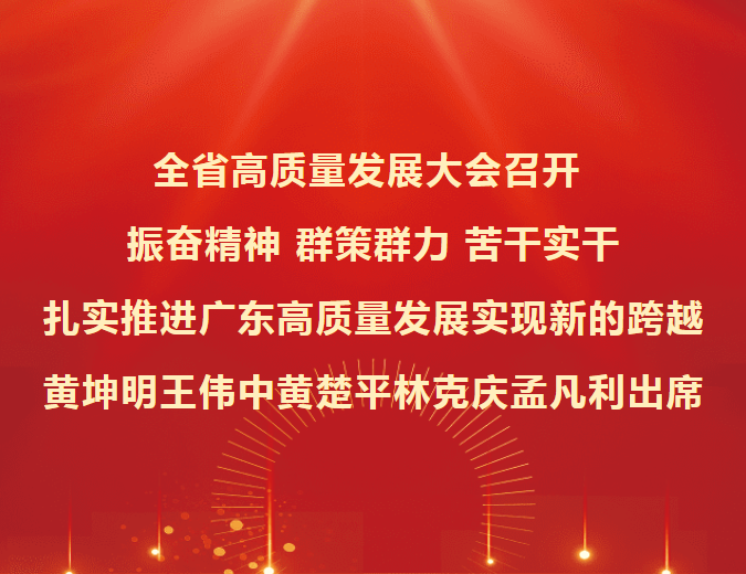 1月28日,农历正月初七,全省高质量发展大会在广州召开。会议坚持以习近平新时代中国特色社会主义思想为指导,深入学习贯彻党的二十大精神和习近平总书记对广东系列重要讲话、重要指示精神,落实省委十三届二次全会部署要求,紧扣高质量发展主题对全年重点工作作出动员部署,凝心聚力推动全省上下在高质量发展之路上形成比学赶超、赛龙夺锦的奋进态势,努力在现代化建设新征程中开好局起好步。省委书记黄坤明出席会议并讲话,省委副书记、省长王伟中主持会议,省人大常委会主任黄楚平,省政协主席,省委常委、广州市委书记林克庆,省委副书记、深圳市委书记孟凡利出席会议。
